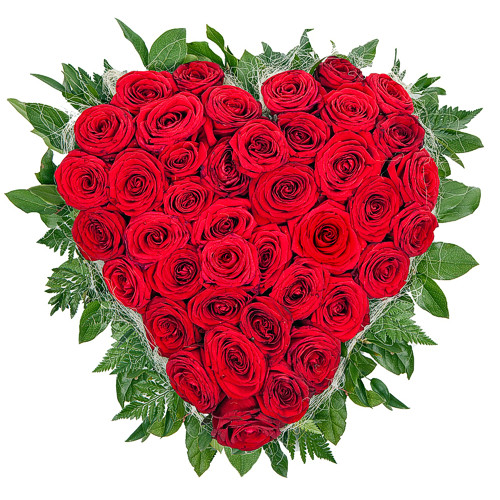 Kompozycja kondolencyjno-pogrzebowa w kształcie serca, ułożona z około 30-35 róż. Prosimy zwrócić uwagę na to, że zależnie od dostępności podkładu oraz stopnia rozwinięcia kwiatów wygląd doręczonej kompozycji może się różnić od zdjęcia.